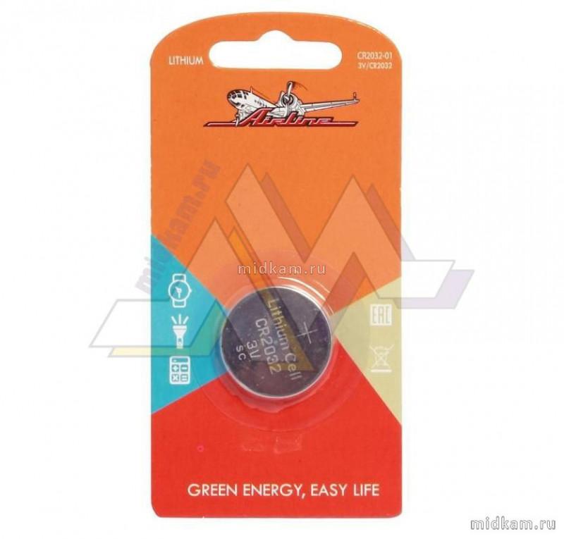 Батарейка CR2032 3V для брелоков сигнализаций литиевая 1шт (CR2032-01) (AIRLINE) CR2032-01